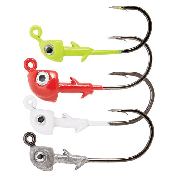 Trokar Boxing Glove Jigs were originally designed for saltwater anglers, but freshwater sticks didn't take long to utilize these jigs too. The side eye and 60-degree leg do a fantastic job of coming through light vegetation and deflecting off cover. The head design creates an enticing body wobble with some swimbaits. The double-barbed keeper that's poured into the head keeps soft plastics in place. The heavier wire hook is prepared to tackle giants without flexing under pressure. Last and certainly not least, the precision triple-sided Trokar Point penetrates easily, turning more bites into fish caught.
